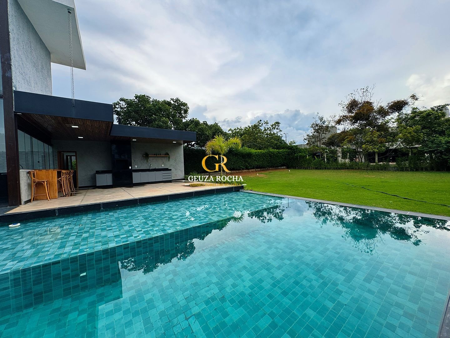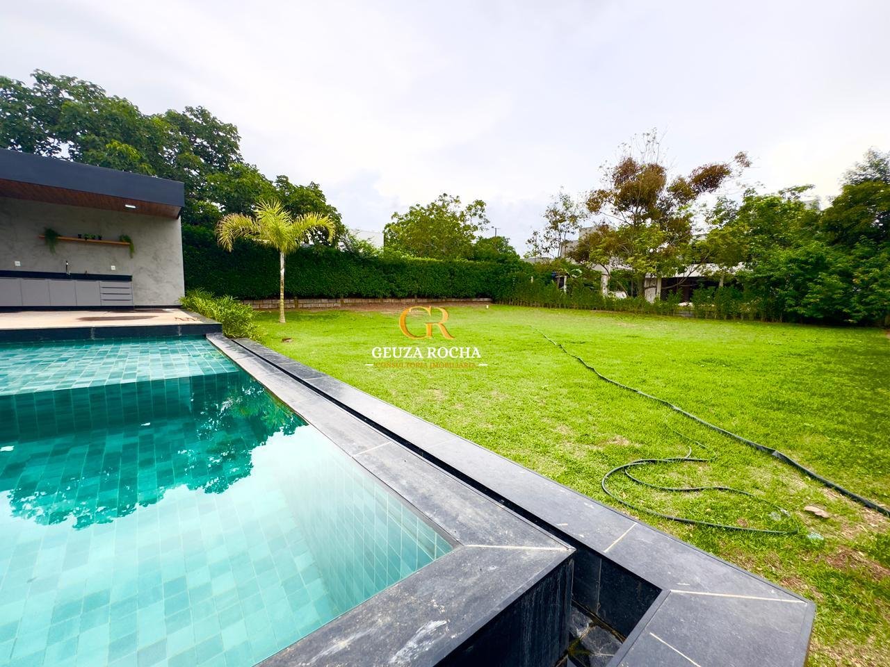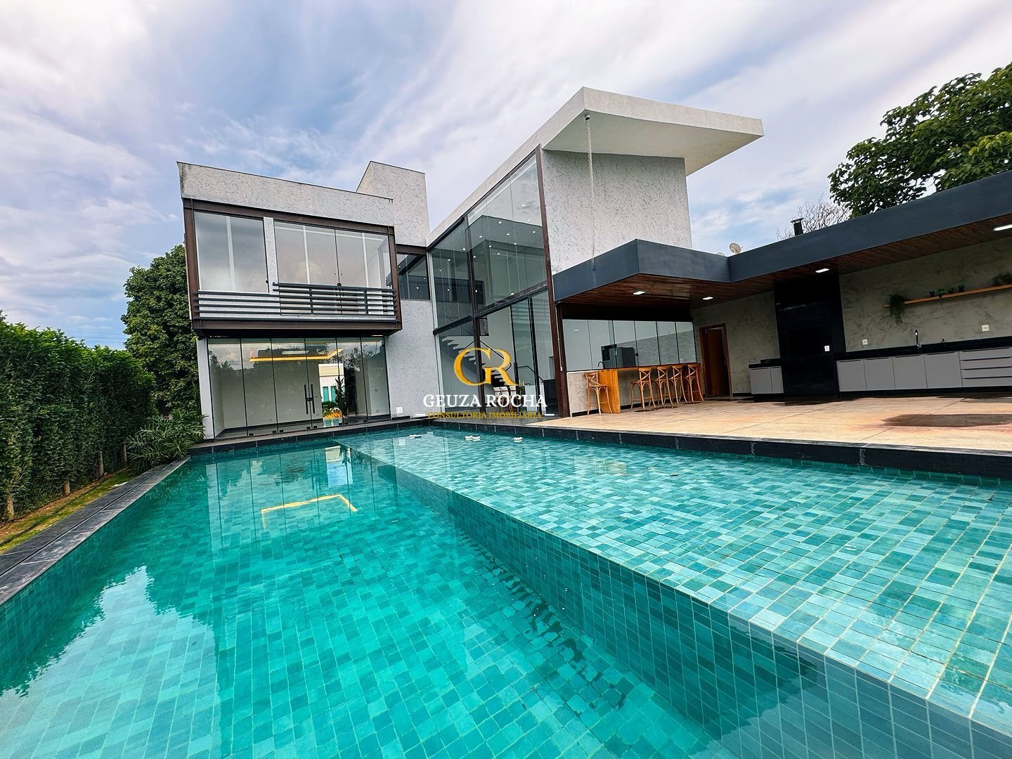 • Piscina de Destaque: Uma piscina com cascata, integrada ao living por um painel de vidro de 6 metros de altura, proporcionando um efeito visual moderno e luminoso.