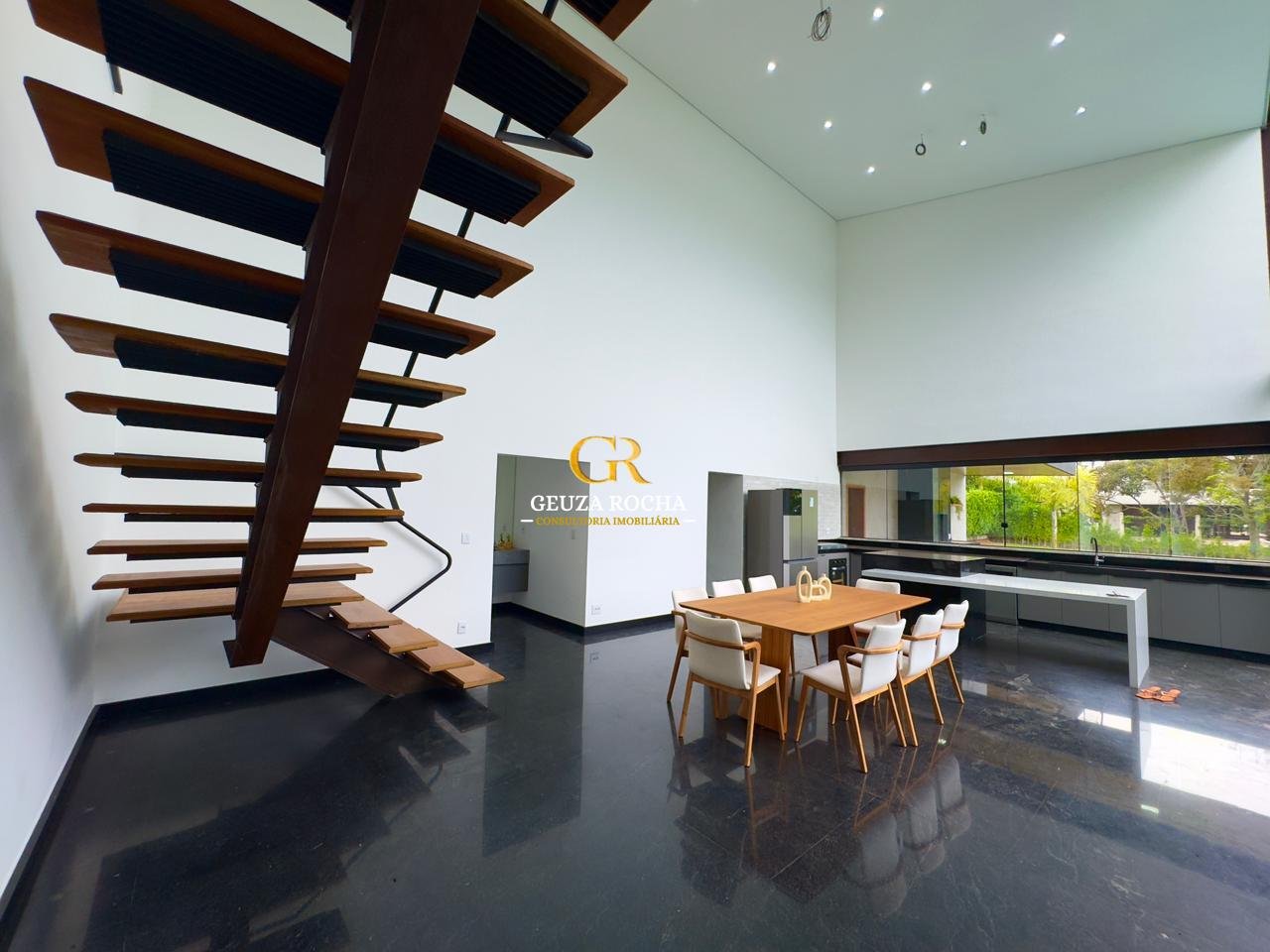 – Ambientes Integrados: Sala de estar e sala de jantar em conceito aberto, garantindo fluidez e iluminação natural.