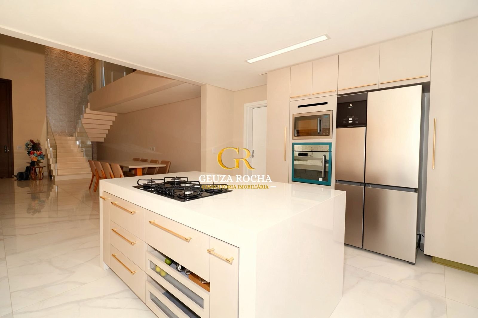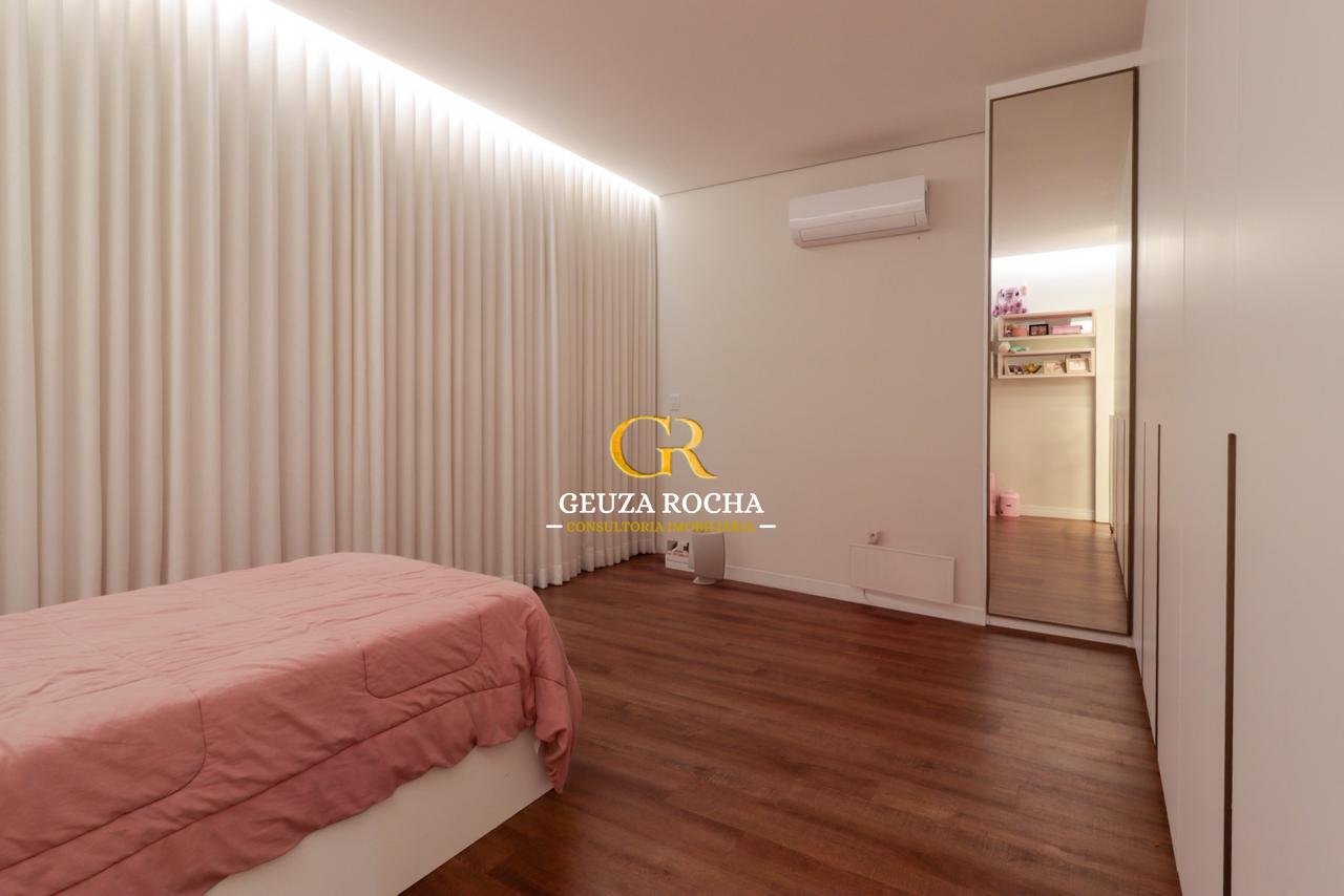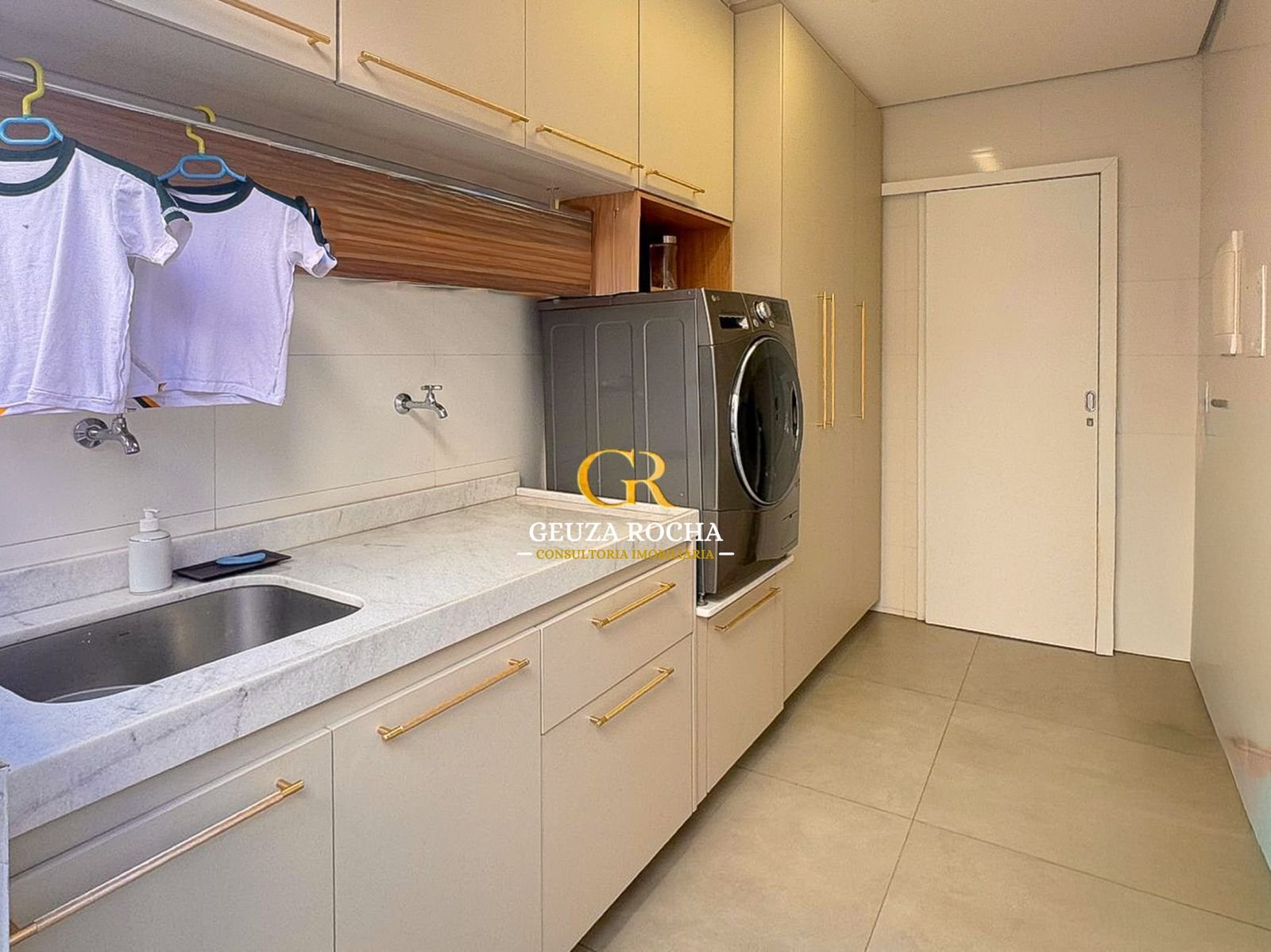 – Cozinha planejada com torre quente, cristaleira e ilha com cooktop;